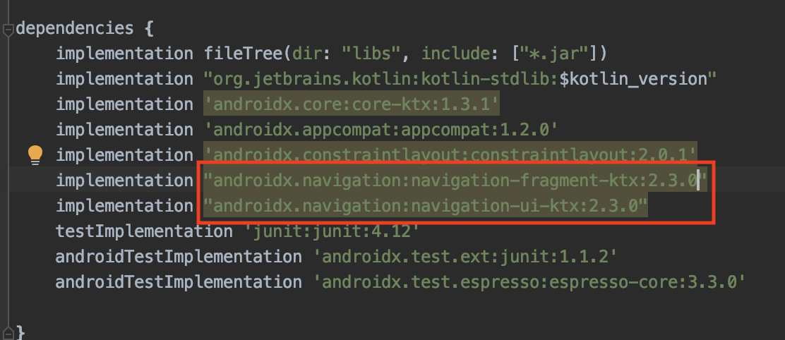implementation "androidx.navigation:navigation-ui:2.3.0"