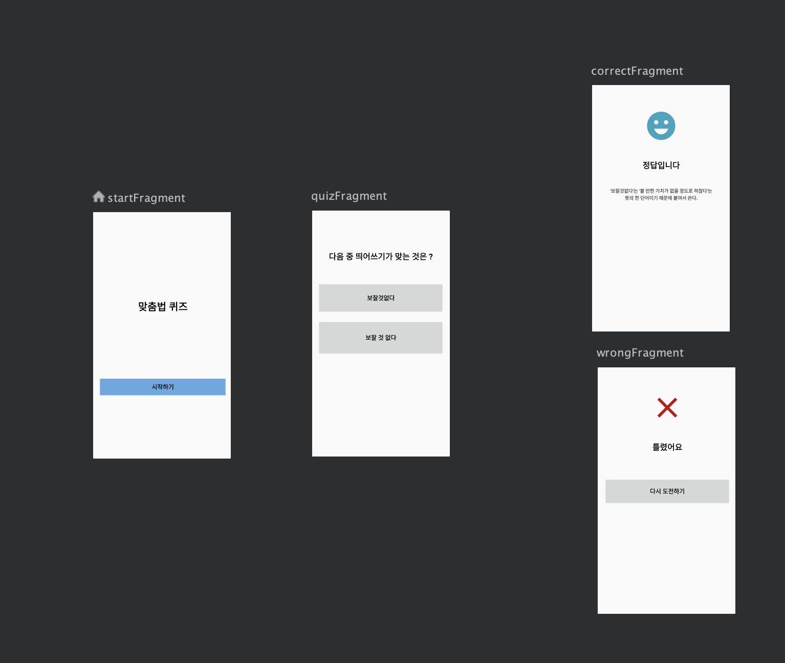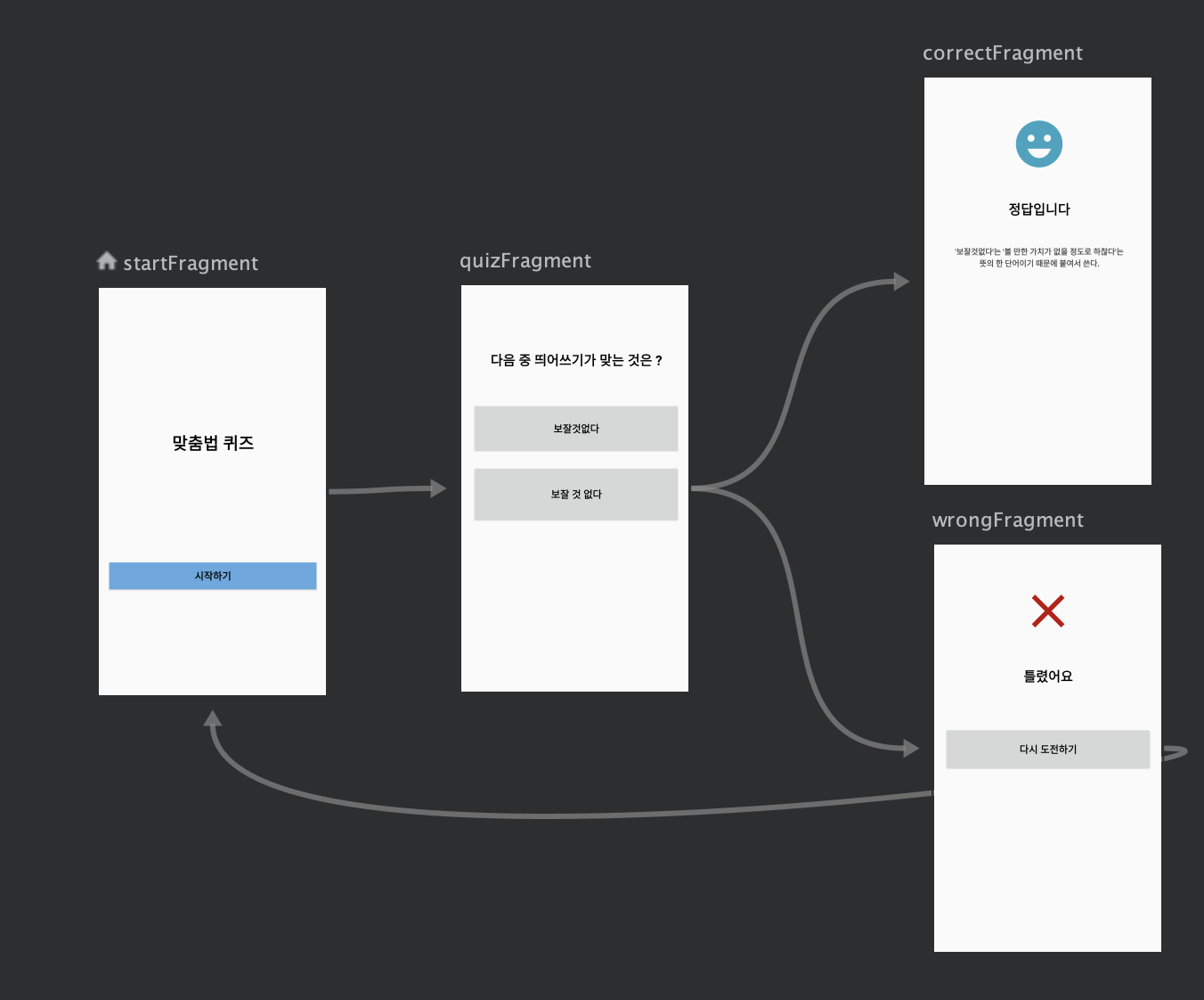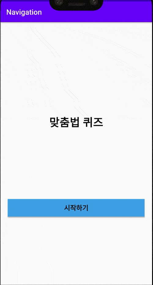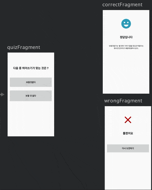 저는 퀴즈가 틀리면 다시 시작페이지로 돌아가는 액션까지 만들어주었습니다.