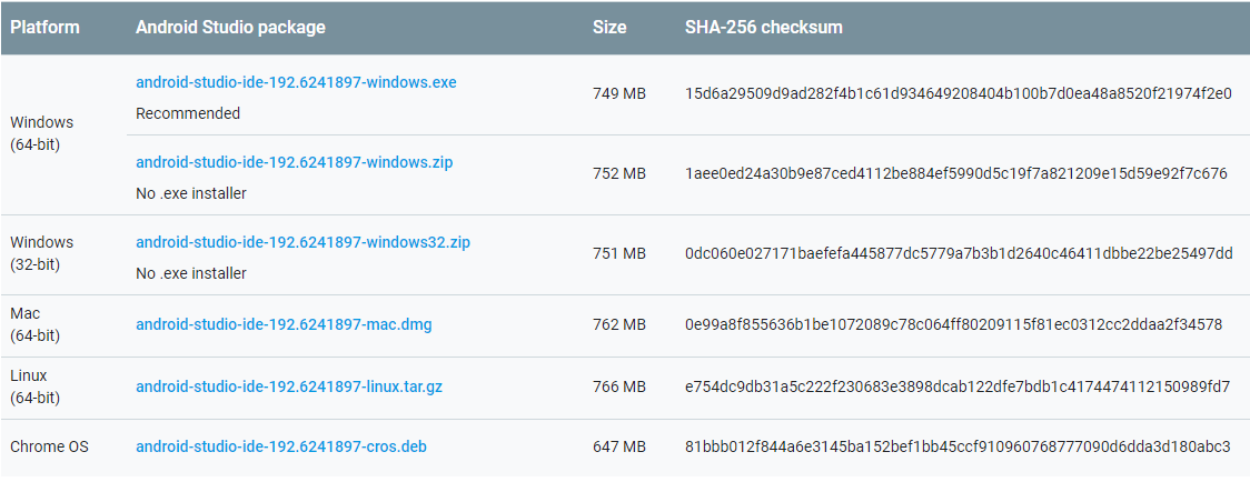 다운로드 파일은 안드로이드 스튜디오 공식 홈페이지에서 받을 수 있습니다!
