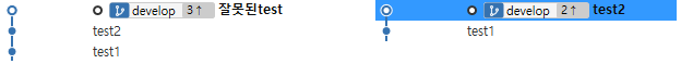 잘못된test에서 고쳤던 부분이 Revert”잘못된test”에서 되돌려져 있는걸 확인할 수 있습니다.